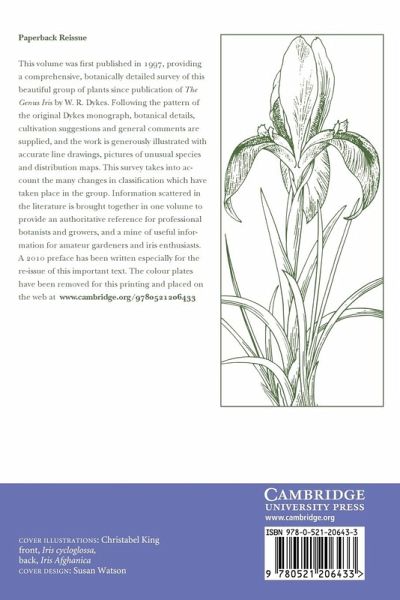 This volume was first published in 1997, providing a comprehensive, botanically detailed survey of this beautiful group of plants since publication of The Genus Iris by W. R. Dykes. Following the pattern of the original Dykes monograph, botanical details, cultivation suggestions and general comments are supplied, and the work is generously illustrated with accurate line drawings, pictures of unusual species and distribution maps. This survey takes into account the many changes in classification which have taken place in the group. Information scattered in the literature is brought together in one volume to provide an authoritative reference for professional botanists and growers, and a mine of useful information for amateur gardeners and iris enthusiasts. A 2010 preface has been written especially for the re-issue of this important text. The colour plates have been removed for this printing and placed on the web at www.cambridge.org/9780521206433.