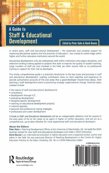 Introduction 1. What is staff and educational development? 2. Carrying out a needs analysis: from intuition to rigour 3. Planning and running events 4. Consultancy in educational development 5. Monitoring and evaluating staff and educational development 6. Disseminating educational developments 7. Educational development through information and communications technology 8. Working on educational development projects 9. Development in the disciplines 10. Working creatively with national agendas 11. Being an agent of change 12. Learning from experience 13. Developing professional expertise in staff and educational development 14. Personal and professional development: strategies for coping and for growth