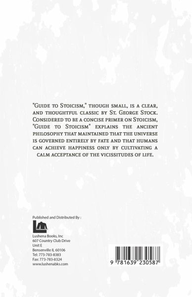 Guide to Stoicism," though small, is a clear, and thoughtful classic by St. George Stock. Considered to be a concise primer on Stoicism, "Guide to Stoicism" explains the ancient philosophy that maintained that the universe is governed entirely by fate and that humans can achieve happiness only by cultivating a calm acceptance of the vicissitudes of life.