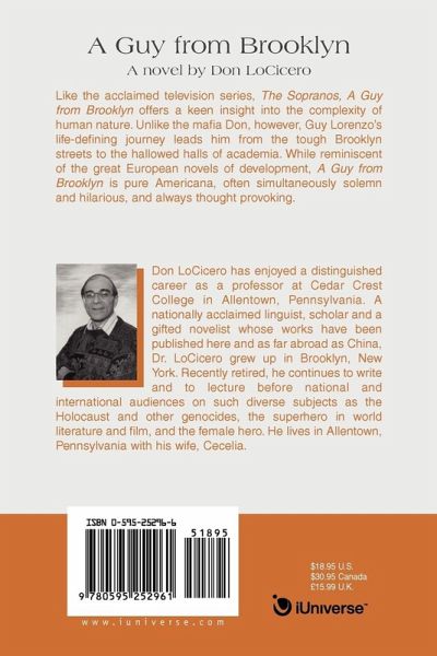 Like the acclaimed television series, The Sopranos, A Guy from Brooklyn offers a keen insight into the complexity of human nature. Unlike the Mafia Don, however, Guy Lorenzo's journey leads him from the Brooklyn slums to the hallowed halls of academia. While reminiscent of the great European novels of development, A Guy from Brooklyn is pure Americana, often simultaneously solemn and hilarious, and always thought provoking.