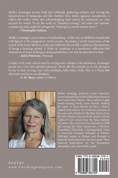 A Habit of Landscape celebrates the convergent meanings of habit and habitat. each sharing the words "to dwell." These poems hold sensate moments-family experiences, inner revelations, transformative places. A realized kinship between the human and natural worlds signals the inclusiveness of place. Not something "out there," this shared space-personal or global- often surprises in the poem's turn. Like flash narratives these poems contain worlds in the vibrating fabric of the instant- forgotten, dismissed, previously unseen. Whether an elegy for a brother, an encounter with a pronghorn, or the whispers surrounding adoption, these lyric pieces speak to the sacrality of the moment.