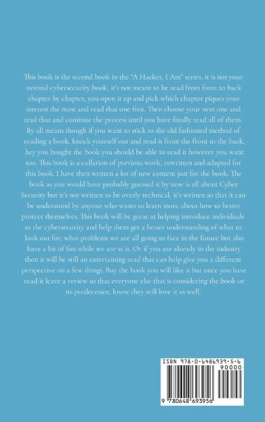 This book is the second book in the "A Hacker, I Am" series, it is not your normal cybersecurity book, it's not meant to be read from front to back chapter by chapter, you open it up and pick which chapter piques your interest the most and read that one first. Then choose your next one and read that and continue the process until you have finally read all of them. By all means though if you want to stick to the old fashioned method of reading a book, knock yourself out and read it from the front to the back, hey you bought the book you should be able to read it however you want too. This book is a collation of previous work, rewritten and adapted for this book. I have then written a lot of new content just for the book. The book as you would have probably guessed it by now is all about Cyber Security but it's not written to be overly technical, it's written so that it can be understood by anyone who wants to learn more about how to better protect themselves. This book will be great at helping introduce individuals to the cybersecurity and help them get a better understanding of what to look out for, what problems we are all going to face in the future but also have a bit of fun while we are at it. Or if you are already in the industry then it will be still an entertaining read that can help give you a different perspective on a few things. Buy the book you will like it but once you have read it leave a review so that everyone else that is considering the book or its predecessor, know they will love it as well.