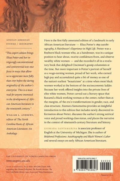Here is the first fully annotated edition of a landmark in early African American literature — Eliza Potter’s 1859 autobiography, A Hairdresser’s Experience in High Life. Potter was a freeborn black woman who, as a hairdresser, was in a unique position to hear about, receive confidences from, and observe wealthy white women — and she recorded it all in a revelatory book that delighted Cincinnati’s gossip columnists at the time. But more important is Potter’s portrait of herself as a wage-earning woman, proud of her work, who earned high pay and accumulated quite a bit of money as one of the nation’s earliest “beauticians” at a time when most black women worked at the bottom of the socioeconomic ladder. Because her work offered insights into the private lives of elite white women, Potter carved out a literary space that featured a black working woman at the center, rather than at the margins, of the era’s transformations in gender, race, and class structure. Xiomara Santamarina provides an insightful introduction to this edition that includes newly discovered information about Potter, discusses the author’s strong satirical voice and proud working-class status, and places the narrative in the context of nineteenth-century literature and history.