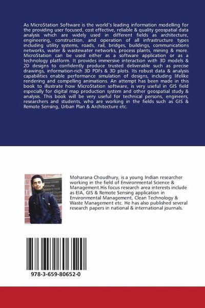 As MicroStation Software is the world's leading information modelling for the providing user focused, cost effective, reliable & quality geospatial data analysis which are widely used in different fields as architecture, engineering, construction, and operation of all infrastructure types including utility systems, roads, rail, bridges, buildings, communications networks, water & wastewater networks, process plants, mining & more. MicroStation can be used either as a software application or as a technology platform. It provides immersive interaction with 3D models & 2D designs to confidently produce trusted deliverable such as precise drawings, information-rich 3D PDFs & 3D plots. Its robust data & analysis capabilities enable performance simulation of designs, including lifelike rendering and compelling animations. An attempt has been made in this book to illustrate how MicroStation software, is very useful in GIS field especially for digital map production system and other geospatial study & analysis. This book will be very useful for technical persons, engineers, researchers and students, who are working in the fields such as GIS & Remote Sensing, Urban Plan & Architecture etc.
