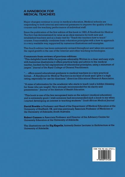 Since the publication of the first edition of this book in 1983, A Handbook for Medical Teachers has established itself as an ideal resource for new and established teachers who frequently still have little opportunities for education training. Its popularity relates to the successful combination of sound educational principles, a how-to-do-it approach and an entertaining easy-to-read style. It is supported by numerous illustrations, examples, and pertinent cartoons.