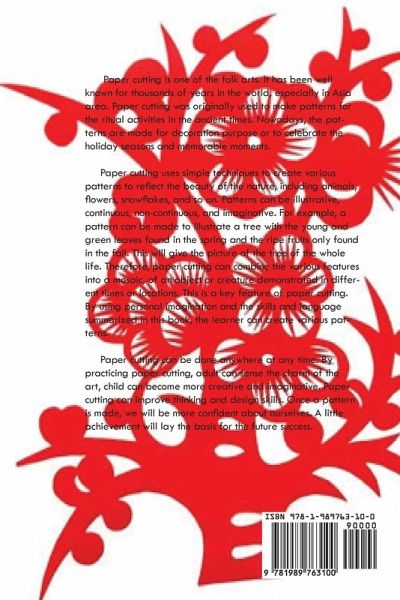 Paper cutting is one of the folk arts. It has been well known for thousands of years in the world, especially in Asia area. Paper cutting was originally used to make patterns for the ritual activities in the ancient times. Nowadays, the patterns are made for decoration purpose or to celebrate the holiday seasons and memorable moments. Paper cutting uses simple techniques to create various patterns to reflect the beauty of the nature, including animals, flowers, snowflakes, and so on. Patterns can be illustrative, continuous, non-continuous, and imaginative. For example, a pattern can be made to illustrate a tree with the young and green leaves found in the spring and the ripe fruits only found in the fall. This will give the picture of the tree of the whole life. Therefore, paper cutting can combine the various features into a mosaic, of an object or creature demonstrated in different times or locations. This is a key feature of paper cutting. By using personal imagination and the skills and language summarized in this book, the learner can create various patterns. Paper cutting can be done anywhere at any time. By practicing paper cutting, adult can sense the charm of the art, child can become more creative and imaginative. Paper cutting can improve thinking and design skills. Once a pattern is made, we will be more confident about ourselves. A little achievement will lay the basis for the future success.