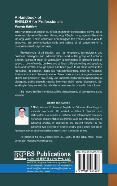 This Handbook of English is, in fact, meant for professionals as well as all levels and classes of learners. Having tought English language and literature for long years, I have conceived and designed this volume with a view to improving the communication skills and calibre of all concerned on a comprehensive fool-proof basics. Professionals of all shades, such as, engineers, technologists and business managers and administrators need a fair grasp of functional English, sufficient stock of vocabulary, a knowledge of different parts of speech, roots of words, prefixes and suffixes, different writing and speaking skills and formats. Enough space has been given to all these items in this handbook. In addition, items like videoconferencing, chairing meetings, foreign words and phases that one often comes across, a large number of idioms and phrases in day-to-day use, model formal and informal situational dialogues, public speech making, interview skills, group discussion, job-seeking techniques and phonetics have been amply covered in this volume. It is hoped that this handbook will be of much use to all professionals and learners.