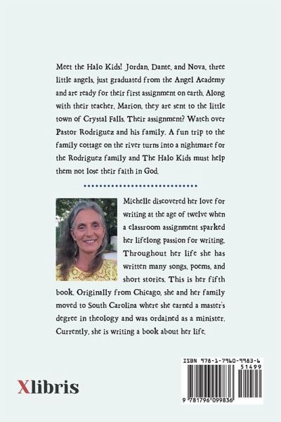 Meet the Halo Kids! Jordan, Dante, and Nova, three little angels, just graduated from the Angel Academy and are ready for their first assignment on earth. Along with their teacher, Marion, they are sent to the little town of Crystal Falls. Their assignment? Watch over Pastor Rodriguez and his family. A fun trip to the family cottage on the river turns into a nightmare for the Rodriguez family and The Halo Kids must help them not lose their faith in God.