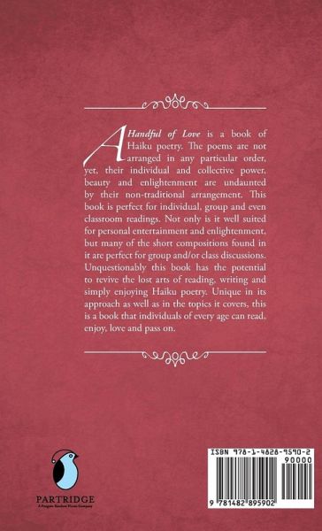 A Handful of Love is a book of Haiku poetry. The poems are not arranged in any particular order, yet, their individual and collective power, beauty and enlightenment are undaunted by their non-traditional arrangement. This book is perfect for individual, group and even classroom readings. Not only is it well suited for personal entertainment and enlightenment, but many of the short compositions found in it are perfect for group and/or class discussions. Unquestionably this book has the potential to revive the lost arts of reading, writing and simply enjoying Haiku poetry. Unique in its approach as well as in the topics it covers, this is a book that individuals of every age can read, enjoy, love and pass on.