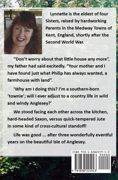Lynnette and her three sisters were born and raised in the southeast of England shortly after World War II, among those known as the 'Baby Boomers'. Her parents were hard-working and enterprising, giving their daughters a privileged life including new household inventions that were in their prime during the 1950s. She married her dynamic, country-born husband who introduced her to his life, which was a sharp contrast to her 'townie' upbringing. With three young children they moved to the Isle of Anglesey, or Ynys Môn, and discovered the joys and challenges of sheep farming while learning to integrate with the strongly Welsh community.