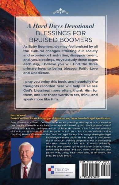As Baby Boomers, we may feel bruised by all the cultural changes afflicting our society and experience frustration, disappointment, and, yes, blessings. As you study these pages each day, I believe you will find the three primary keys to being blessed: Faith, Love and Obedience. I pray you enjoy this book, and hopefully the thoughts recorded here will help us all see God's blessings more often, thank Him for them, and use those words to act, think, and speak more like Him.