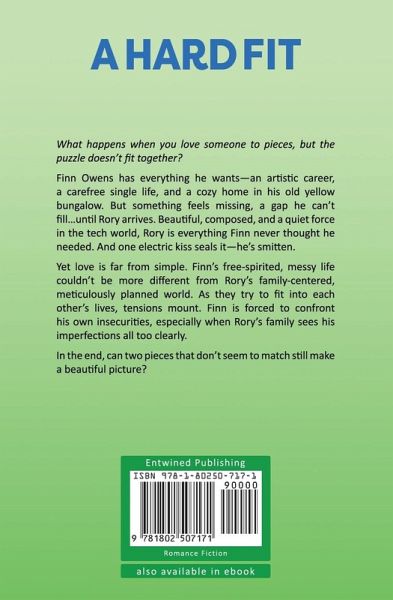 What happens when you love someone to pieces, but the puzzle doesn't fit together? Finn Owens, a bisexual graphic designer in a successful advertising firm, is bold, confident and enjoying his single life. He's busy making art, working out, puttering around his old yellow bungalow and dating...a lot. It's fun and all, but he starts to think that maybe he'll never find quite the right person. Until one day, Rory, nonbinary and beautiful, comes to work at his office. Petite, quiet, serene Rory is the opposite of big, muscly Finn in every way. But Finn is drawn to them, and, miraculously, Rory seems to feel the same way. One steamy kiss later at Finn's Halloween party, they've both fallen hard. The problem is, their lives don't match-the puzzle pieces just won't fit together. Finn is a messy painter, Rory is a tidy tech guru. Finn is estranged from his struggling family, and Rory sees theirs almost every weekend at large, elaborate gatherings. When Finn's sister reaches out for help with her kids, Finn's not sure he has what it takes. He can barely handle Rory's big happy family constantly together celebrating birthdays and holidays over champagne and chef-prepared dinners. Finn knows he doesn't belong with them, and some people in Rory's family agree. It's clear that Finn and Rory just don't fit. Can Finn snap their pieces together without losing his edges?