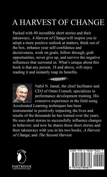 Packed with 40 incredible short stories and their takeaways, 'A Harvest of Change' will inspire you to adopt a more positive outlook at matters, think out of the box, enhance your self-confidence and decisiveness, work on goals, follow through, grab opportunities, never give up, and survive the negative influences that surround us. What's unique about this book is that any person, 18 and above, will enjoy reading it and instantly reap its benefits.
