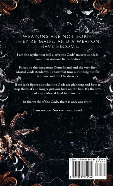 Weapons are not born, they're made. And a weapon, I have become. I am the scythe that will cleave the Gods' traitorous heads from their not-so-Divine bodies. Forced to the dangerous Ortus Island and the very first Mortal Gods Academy, I know that time is running out for both me and the Darkhavens. If we can't figure out what the Gods are planning and how to stop them, it's no longer just our lives on the line. It's the lives of every Mortal God in existence. In the world of the Gods, there is only one truth. Trust no one. Not even your blood.