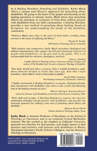 In A Healing Homiletic: Preaching and Disability, Kathy Black offers a unique and effective approach for preaching about disabilities. By going to the heart of the gospel and drawing on the healing narratives or miracle stories, Black shows how preaching affects the inclusion or exclusion of forty-three million persons with disabilities from our faith communities. A Healing Homiletic provides a new method of preaching about healing, based on Scripture, for understanding the needs of the disability community.