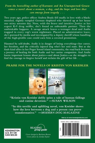 From the bestselling author of Earnest and An Unexpected Grace comes a novel about a woman, a dog, and the hope and love that can emerge from tragedy . . . Two years ago, police officer Andrea Brady fell madly in love with a black-muzzled, slightly rumpled German shepherd who showed up at her house one misty autumn day. Now, with the brave and intuitive Justice as her expert K-9 drug sniffer, she's found an unbeatable partner. Then the unthinkable happens. A savage attack leaves a teenager dead and Andie trapped in every cop's worst nightmare. Placed on administrative leave, she's pursued by media and investigated by a deputy sheriff whose handling of the high-profile case could earn him a coveted promotion. Haunted by self-doubt, Andie is in danger of losing everything-her career, her freedom, and the critically injured dog who's her soul mate. But as she finds kind allies in her Puget Sound island community, the road back becomes a journey of healing for both Andie and her canine companion. And Andie learns important lessons about justice-and about Justice-as she struggles to find the courage to forgive herself and reclaim the gift of her life . . . Praise for the novels of Kristin von Kreisler "Kristin von Kreisler deftly spins a tale of human failings and canine devotion." -Susan Wilson "In this terrific and uplifting novel, von Kreisler shows how the love between a dog and a person can prove transformative." -Modern Dog Magazine