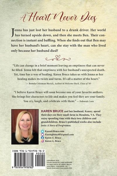 Jenna has just lost her husband to a drunk driver. Her world has turned upside down, and then she meets Ben. Their connectionis instant and baffling. When she finds out that Ben may have her husband's heart, can she stay with the man who lived only because her husband died?