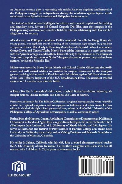 An American woman plays a redeeming role amidst America's duplicity and betrayal of the Philippine struggle for independence during the revolution against Spain, which culminated in the Spanish-American and Philippine American wars. The fiction/nonfiction novel highlights the military and romantic exploits of the dashing and legendary hero, 23-year old General Gregorio Del Pilar, then the youngest in the Philippine army and American Christine Kelcher's intimate relationship with him and her allegiance to his country. Aide-de-camp to Philippine president Emilio Aguinaldo in exile in Hong Kong, the young general was euphoric over the coming of the Americans, espousing to his president acceptance of their offer of help in liberating Manila from the Spanish. When Commodore George Dewey and General Wesley Merritt betrayed the insurgency in a secret agreement with the Spanish to wage a mock battle to liberate the city to the exclusion of the insurgents "to protect the pride and honor of Spain," the general vowed to protect the president from capture, "or else the Republic dies." Military maneuvers by Major Peyton March and Colonel Charles Gilbert and their well-armed and well-trained soldiers are matched by surprise maneuvers by the insurgent general, making his last stand in Tirad Pass with 60 soldiers against 600 Texas Volunteers of the 33rd Infantry Regiment of the U.S. Expeditionary Force. The president avoided capture for 11 months more after the battle.