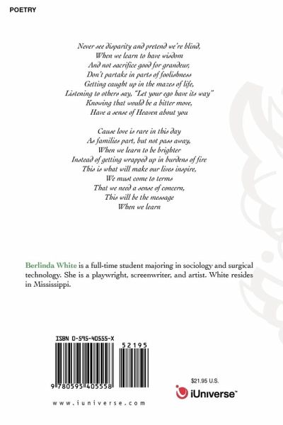 Never see disparity and pretend we're blind, When we learn to have wisdom And not sacrifice good for grandeur, Don't partake in parts of foolishness Getting caught up in the mazes of life, Listening to others say, "Let your ego have its way" Knowing that would be a bitter move, Have a sense of Heaven about you Cause love is rare in this day As families part, but not pass away, When we learn to be brighter Instead of getting wrapped up in burdens of fire This is what will make our lives inspire, We must come to terms That we need a sense of concern, This will be the message When we learn