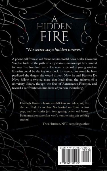 The vampire fantasy sensation all new color hardcover edition with custom printed edges and interior illustrations. A phone call from an old friend sets immortal book dealer Giovanni Vecchio back on the path of a mysterious manuscript he's hunted for over five hundred years. He never expected a young student librarian could be the key to unlock its secrets, nor could he have predicted the danger she would attract. Now he and Beatrice De Novo follow a twisted maze that leads from the archives of a university library, though the fires of Renaissance Florence, and toward a confrontation hundreds of years in the making. A Hidden Fire is the first book in the Elemental Mysteries by Elizabeth Hunter, eleven-time USA Today Bestselling author of the Elemental Legacy series, the Irin Chronicles, and the Shadowlands series.