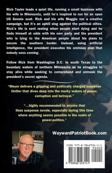Rick Taylor leads a quiet life, running a small business with his wife in Minnesota, until he's inspired to run for an open US Senate seat. Rick and his wife Maggie run a creative campaign, but it's an uphill slog against the political elites. Rick's life is sent reeling when people start dying and he finds himself at odds with his own party and the president who is lying to the American people about his plans to secure the southern border. Instead, using artificial intelligence, the president executes his ominous plan that nobody sees coming. Follow Rick from Washington D.C. to the boundary waters of northern Minnesota to south Texas as he struggles to stay alive while seeking to comprehend and unmask the president's secret agenda.