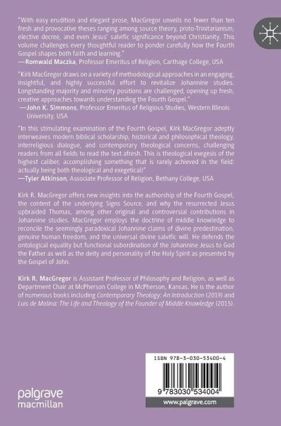 This book provides original and controversial contributions into specific areas of Johannine studies, along with defenses of various traditional theological interpretations of John that are commonly overlooked in New Testament scholarship. Kirk R. MacGregor offers new insights into the authorship of the Fourth Gospel, the content of the underlying Signs Source, the meaning of the phrases "believe in him" and "believe in his name," Jesus' claim that Abraham saw his day, the significance of John 14.6, and why the resurrected Jesus upbraided Thomas. MacGregor employs the doctrine of middle knowledge to reconcile the seemingly paradoxical Johannine claims of divine predestination, genuine human freedom, and the universal divine salvific will. He defends the ontological equality but functional subordination of the Johannine Jesus to God the Father as well as the deity and personality of the Holy Spirit as presented by the Gospel of John.
