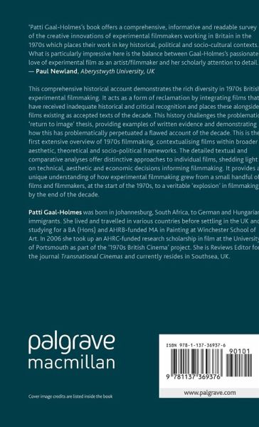 "Patti Gaal-Holmes's book offers a comprehensive, informative and readable survey of the creative innovations of experimental filmmakers working in Britain in the 1970s which places their work in key historical, political and socio-cultural contexts. What is particularly impressive here is the balance between Gaal-Holmes's passionate love of experimental film as an artist/filmmaker and her scholarly attention to detail." - Paul Newland,Aberystwyth University, UK