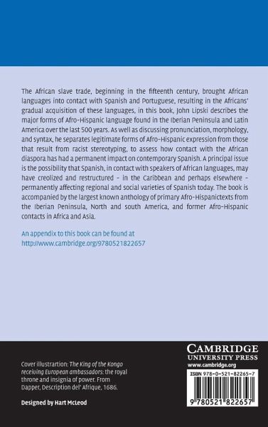 The African slave trade, beginning in the fifteenth century, brought African languages into contact with Spanish and Portuguese, resulting in the Africans' gradual acquisition of these languages. In this 2004 book, John Lipski describes the major forms of Afro-Hispanic language found in the Iberian Peninsula and Latin America over the last 500 years. As well as discussing pronunciation, morphology and syntax, he separates legitimate forms of Afro-Hispanic expression from those that result from racist stereotyping, to assess how contact with the African diaspora has had a permanent impact on contemporary Spanish. A principal issue is the possibility that Spanish, in contact with speakers of African languages, may have creolized and restructured - in the Caribbean and perhaps elsewhere - permanently affecting regional and social varieties of Spanish today. The book is accompanied by the largest known anthology of primary Afro-Hispanic texts from Iberia, Latin America, and former Afro-Hispanic contacts in Africa and Asia.