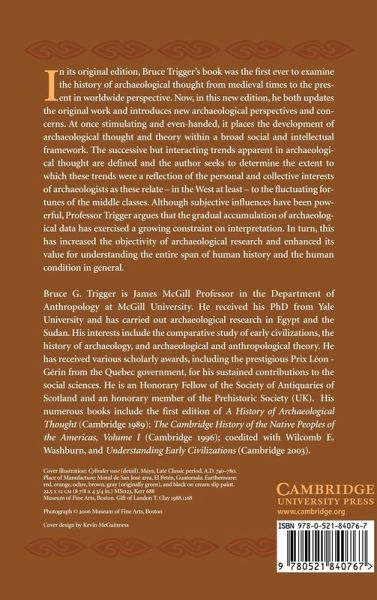 In its original edition, Bruce Trigger's book was the first ever to examine the history of archaeological thought from medieval times to the present in world-wide perspective. Now, in this new edition, he both updates the original work and introduces new archaeological perspectives and concerns. At once stimulating and even-handed, it places the development of archaeological thought and theory throughout within a broad social and intellectual framework. The successive but interacting trends apparent in archaeological thought are defined and the author seeks to determine the extent to which these trends were a reflection of the personal and collective interests of archaeologists as these relate - in the West at least - to the fluctuating fortunes of the middle classes. While subjective influences have been powerful, Professor Trigger argues that the gradual accumulation of archaeological data has exercised a growing constraint on interpretation. In turn, this has increased the objectivity of archaeological research and enhanced its value for understanding the entire span of human history and the human condition in general.