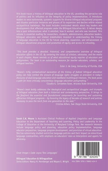 This book traces a history of bilingual education in the US, unveiling the role of politics in policy development and implementation. It introduces readers to past systemic supports for creation of diverse bilingual educational programs and situates particular instances and phases of expansion and decline within related sociopolitical backdrops.
