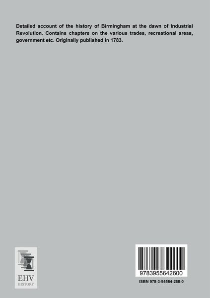 Detailed account of the history of Birmingham at the dawn of Industrial Revolution. Contains chapters on the various trades, recreational areas, government etc. Originally published in 1783.
