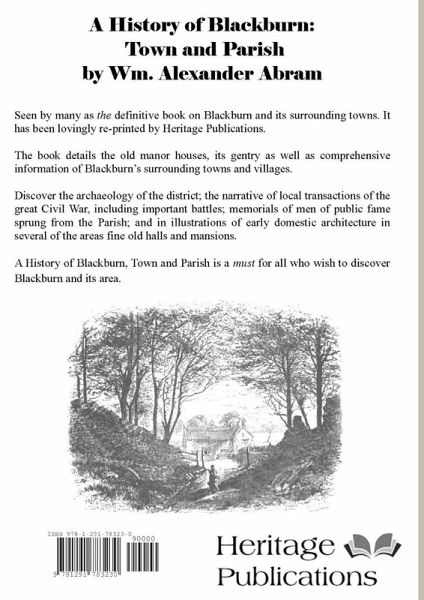 Seen by many as the definitive book on Blackburn and its surrounding towns. It has been lovingly re-printed by Heritage Publications. The book details the old manor houses, its gentry as well as comprehensive information of Blackburn's surrounding towns and villages. Discover the archaeology of the district; the narrative of local transactions of the great Civil War, including important battles; memorials of men of public fame sprung from the Parish; and in illustrations of early domestic architecture in several of the areas fine old halls and mansions. A History of Blackburn, Town and Parish is a must for all who wish to discover Blackburn and its area.
