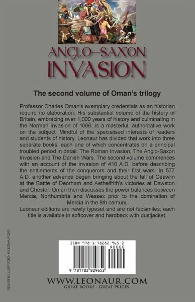 The second volume of Oman's trilogy Professor Charles Oman's exemplary credentials as an historian require no elaboration. His substantial volume of the history of Britain, embracing over 1,000 years of history and culminating in the Norman Invasion of 1066, is a masterful, authoritative work on the subject. Mindful of the specialised interests of readers and students of history, Leonaur has divided that work into three separate books, each one of which concentrates on a principal troubled period in detail: The Roman Invasion, The Anglo-Saxon Invasion and The Danish Wars. The second volume commences with an account of the invasion of 410 A.D. before describing the settlements of the conquerors and their first wars. In 577 A.D. another advance began bringing about the fall of Ceawlin at the Battle of Deorham and Aethelfrith's victories at Dawston and Chester. Oman then discusses the power balances between Mercia, Northumbria and Wessex prior to the domination of Mercia in the 8th century. Leonaur editions are newly typeset and are not facsimiles; each title is available in softcover and hardback with dustjacket.