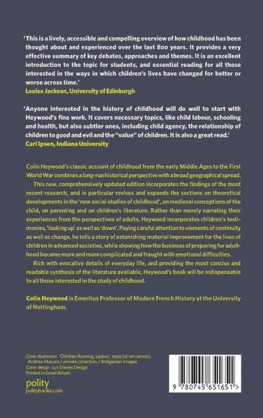 This new, comprehensively updated edition incorporates the findings of the most recent research, and in particular revises and expands the sections on theoretical developments in the 'new social studies of childhood', on medieval conceptions of the child, on parenting and on children's literature. Rather than merely narrating their experiences from the perspectives of adults, Heywood incorporates children's testimonies, 'looking up' as well as 'down'. Paying careful attention to elements of continuity as well as change, he tells a story of astonishing material improvement for the lives of children in advanced societies, while showing how the business of preparing for adulthood became more and more complicated and fraught with emotional difficulties.