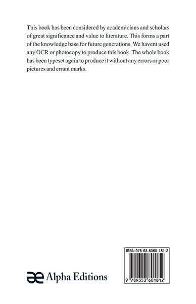 This book has been considered by academicians and scholars of great significance and value to literature. This forms a part of the knowledge base for future generations. We have represented this book in the same form as it was first published. Hence any marks seen are left intentionally to preserve its true nature.