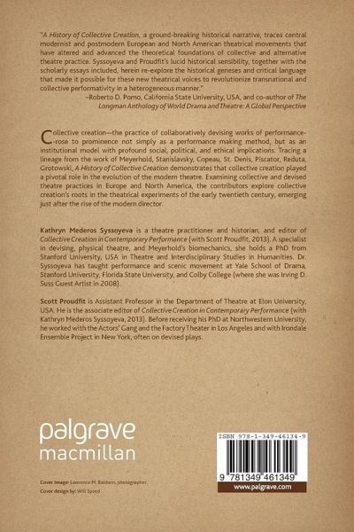 "A History of Collective Creation, a groundbreaking historical narrative traces central modernist and postmodern European and North American theatrical movements that have altered and advanced the theoretical foundations of collective and alternative theatre practice. Dr. Kathryn Syssoyeva's lucid historical sensibility together with the scholarly essays included herein, re-explores the historical geneses and critical language that made it possible for these new theatrical voices to revolutionize transnational, collective performativity in an heterogeneous manner." - Roberto D. Pomo, California State University, USA, and co-author of The Longman Anthology of World Drama and Theatre: A Global Perspective