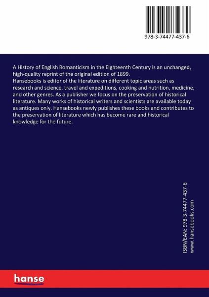 A History of English Romanticism in the Eighteenth Century is an unchanged, high-quality reprint of the original edition of 1899.