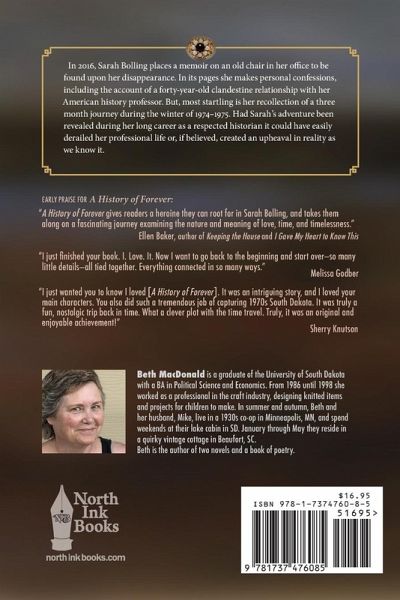 On the first pages of A History of Forever, gallery owner and historian Sarah Bolling disappears leaving only a letter and memoir as explanations to her whereabouts. In her manuscript she tells of a clandestine relationship with her history professor and makes other personal confessions that she has locked away for over forty years. Most startling is Sarah's recollection of a three month journey during the winter of 1974-1975, which if revealed during her long career as a respected historian could have derailed her professional life, or, had she been believed, created an upheaval in the world of physics and reality as we know it.