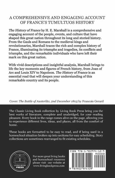 The History of France by H. E. Marshall is a comprehensive and engaging account of the people, events, and culture that have shaped this great nation throughout its long and storied history. From the Gauls and Romans to the medieval kings and revolutionaries, Marshall traces the rich and complex history of France, illuminating its triumphs and tragedies, its conflicts and triumphs, and the remarkable individuals who have left their mark on this great nation. With vivid descriptions and insightful analysis, Marshall brings to life the key moments and figures of French history, from Joan of Arc and Louis XIV to Napoleon. The History of France is an essential read that will deepen your understanding of this remarkable country and its people.