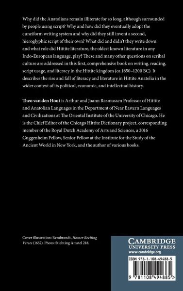 For all those interested in literacy and script usage in general and in the ancient world in particular. As the first, comprehensive overview, it sketches the development of literacy and of literature in Hittite Anatolia (2000/1650-1200 BC) and situates them in the history of the kingdom.