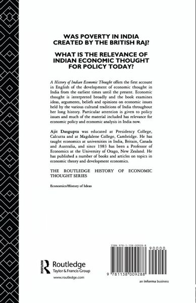 The history of Indian economic thought provides rich insights into both economic issues and the workings of the Indian mind. A History of Indian Economic Thought provides the first overview of economic thought in the sub-continent. Arguing that it would be inappropriate to rely on formal economic analyses it draws on a wide range of sources; epics, religious and moral texts for the early period and public speeches, addresses, and newspaper articles for controversies from the nineteenth century onwards. What emerges is a rich mosaic reflecting India's different cultures and civilizations. Hinduism, Buddhism and Islam all address economic issues and British colonial rule had a deep impact, both in propagating Western economic ideas and in provoking Indian theories of colonialism and underdevelopment. The author concludes with chapters on Ghandian economics and on Indian economic thought since Independence.