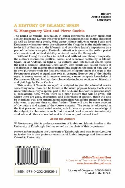 The period of Muslim occupation in Spain represents the only significant contact Islam and Europe was ever to have on European soil. In this important as well as fascinating study, Watt traces Islam's influence upon Spain and European civilization - from the collapse of the Visigoths in the eighth century to the fall of Granada in the fifteenth, and considers Spain's importance as a part of the Islamic empire. Particular attention is given to the golden period of economic and political stability achieved under the Umayyads. Without losing themselves in detail and without sacrificing complexity, the authors discuss the political, social, and economic continuity in Islamic Spain, or al-Andalus, in light of its cultural and intellectual effects upon the rest of Europe. Medieval Christianity, Watt points out, found models of scholarship in the Islamic philosophers and adapted the idea of holy war to its own purposes while the final reunification of Spain under the aegis of the Reconquista played a significant role in bringing Europe out of the Middle Ages. A survey essential to anyone seeking a more complete knowledge of European or Islamic history, the volume also includes sections on literature and philology by Pierre Cachia. This series of "Islamic surveys" is designed to give the educated reader something more than can be found in the usual popular books. Each work undertakes to survey a special part of the field, and to show the present stage of scholarship here. Where there is a clear picture this will be given; but where there are gaps, obscurities and differences of opinion, these will also be indicated. Full and annotated bibliographies will afford guidance to those who want to pursue their studies further. There will also be some account of the nature and extent of the source material. The series is addressed in the first place to the educated reader, with little or no previous knowledge of the subject; its character is such that it should be of value also to university students and others whose interest is of a more professional kind.