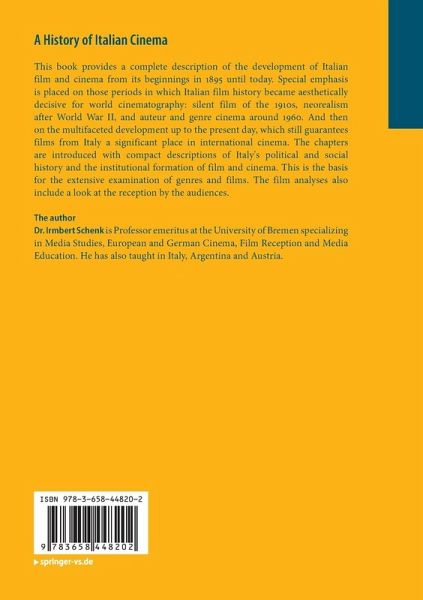 This book provides a complete description of the development of Italian film and cinema from its beginnings in 1895 until today. Special emphasis is placed on those periods in which Italian film history became aesthetically decisive for world cinematography: silent film of the 1910s, neorealism after World War II, and auteur and genre cinema around 1960. And then on the multifaceted development up to the present day, which still guarantees films from Italy a significant place in international cinema. The chapters are introduced with compact descriptions of Italy's political and social history and the institutional formation of film and cinema. This is the basis for the extensive examination of genres and films. The film analyses also include a look at the reception by the audiences.