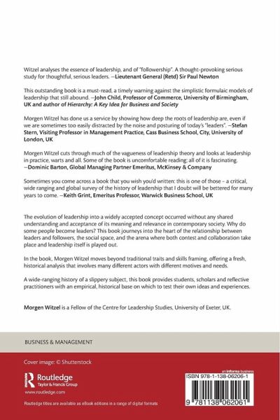 'It is all here: the history, culture, psychology, philosophy, politics and practice of leadership, set out in clear detail, with rich learning worn very lightly. Morgen Witzel has done us a service by showing how deep the roots of leadership are, even if we are sometimes too easily distracted by the noise and posturing of today's "leaders".' - Stefan Stern, Visiting Professor in Management Practice, Cass Business School, City, University of London, UK.
