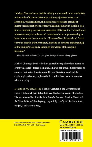 'Michael Charney's new book is a timely and very welcome contribution to the study of Burma or Myanmar. A History of Modern Burma is an accessible, well organized, and extensively researched account of Burma's recent past by one of today's leading scholars in the field. At a time of increasing international awareness of Burma, the book will be of interest not only to students and researchers but to anyone wanting to learn more about the country. Dr Charney offers a balanced and factual survey of modern Burmese history, drawing on his deep understanding of the country's past and a thorough knowledge of the existing literature.' Thant Myint-U