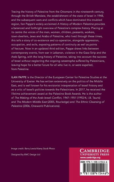 Tracing the history of Palestine from the Ottomans in the nineteenth century, through the British Mandate, the establishment of the state of Israel in 1948, and the subsequent wars and conflicts which have dominated this troubled region, Ilan Pappe's widely acclaimed A History of Modern Palestine provides a balanced and forthright overview of Palestine's complex history. Placing at its centre the voices of the men, women, children, peasants, workers, town-dwellers, Jews and Arabs of Palestine, who lived through these times, this tells a story of co-existence and co-operation, as well as oppression, occupation, and exile, exposing patterns of continuity as well as points of fracture. Now in an updated third edition, Pappe draws links between contemporary events, from war in Lebanon, violence in the Gaza Strip and the Arab Spring, with the long history of Palestine, taking into account the success of Israel without neglecting the on-going catastrophe suffered by Palestinians, leaving hope for a better future for all who live in, or were expelled, from Palestine.