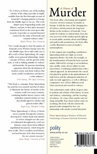 This book offers a fascinating and insightful overview of seven centuries of murder in Europe. It tells the story of the changing face of violence and documents the long-term decline in the incidence of homicide. From medieval vendettas to stylised duels, from the crime passionel of the modern period right up to recent public anxieties about serial killings and underworld assassinations, the book offers a richly illustrated account of murder's metamorphoses.