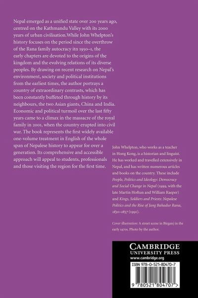 John Whelpton's history is the first comprehensive and accessible single-volume history of Nepal. Early chapters are devoted to the origins of the kingdom, while the focus of the book is on the last fifty years when economic and political turmoil climaxed in the massacre of the royal family and the resulting civil war.