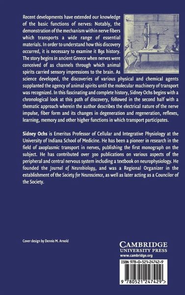 Recent developments have extended our knowledge of the basic functions of nerves: notably, the demonstration of the mechanism within nerve fibers which transports a wide range of essential materials. In order to understand how this discovery occurred, it is necessary to examine its history. The story begins in ancient Greece when nerves were conceived of as channels through which animal spirits carried sensory impressions to the brain. As science developed, the discoveries of various physical and chemical agents supplanted the agency of animal spirits until the molecular machinery of transport was recognized. In this fascinating and complete history, Sidney Ochs begins with a chronological look at this path of discovery, followed in the second half by a thematic approach wherein the author describes the electrical nature of the nerve impulse, fiber form and its changes in degeneration and regeneration, reflexes, learning, memory and other higher functions in which transport participates.