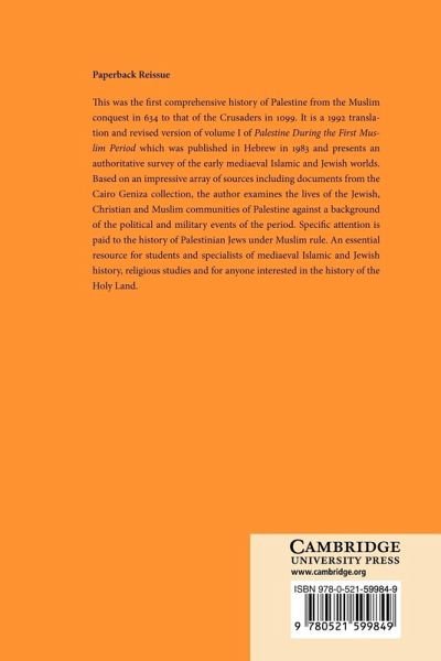 This was the first comprehensive history of Palestine from the Muslim conquest in 634 to that of the Crusaders in 1099. It is a 1992 translation and revised version of volume I of Palestine During the First Muslim Period which was published in Hebrew in 1983 and presents an authoritative survey of the early mediaeval Islamic and Jewish worlds. Based on an impressive array of sources including documents from the Cairo Geniza collection, the author examines the lives of the Jewish, Christian and Muslim communities of Palestine against a background of the political and military events of the period. Specific attention is paid to the history of Palestinian Jews under Muslim rule. An essential resource for students and specialists of mediaeval Islamic and Jewish history, religious studies and for anyone interested in the history of the Holy Land.